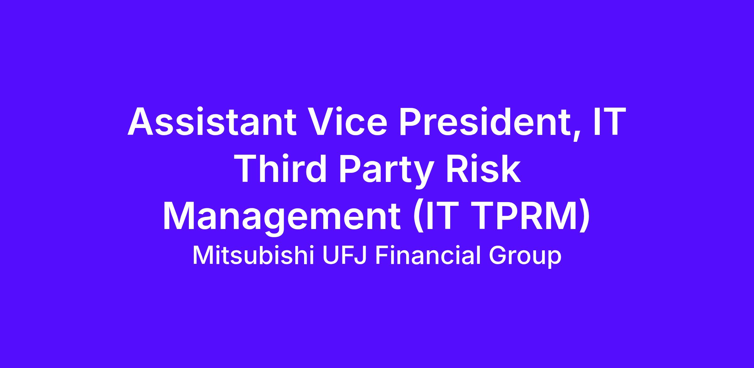 The Assistant Vice President, IT Third Party Risk Management (IT TPRM) assists the VP and the ASO IT TPRM team in executing the end-to-end IT third-party risk management process across the System Office of Asia (ASO). The role focuses on timely handling of IT TPRM cases, coordination with internal stakeholders and vendors, and supporting effective portfolio management and oversight of IT third parties.