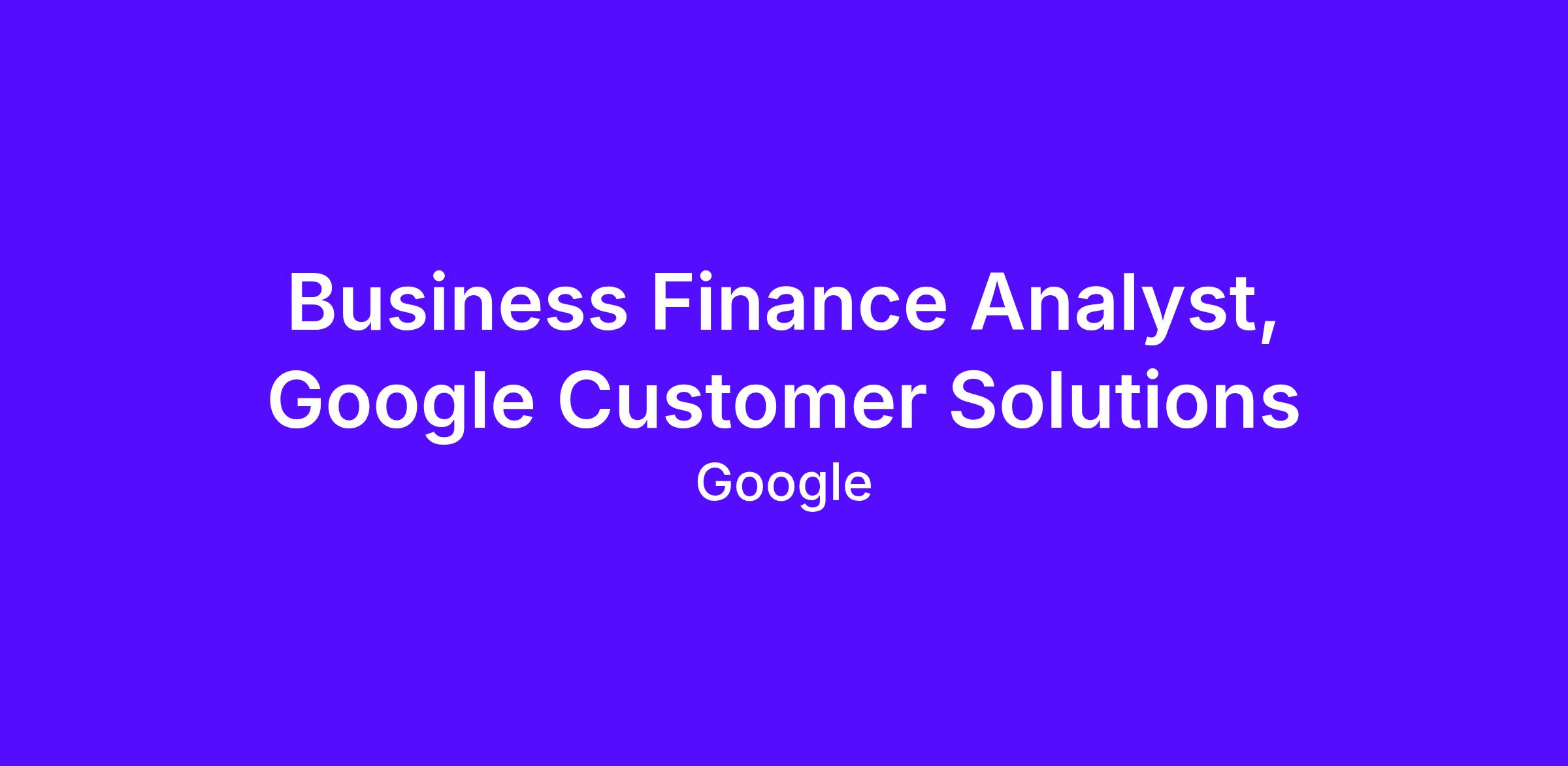 Business Finance is part of Googleโs Financial Planning & Analysis (FP&A) organization, providing financial and analytical support to Googleโs business organization. Our work is integral to the strategic decision-making and operations of the commercial teams across all our advertising products. From understanding market and usage trends to exploring the productivity and return of our various investments, the Finance organization is an important partner and advisor to the commercial leaders.