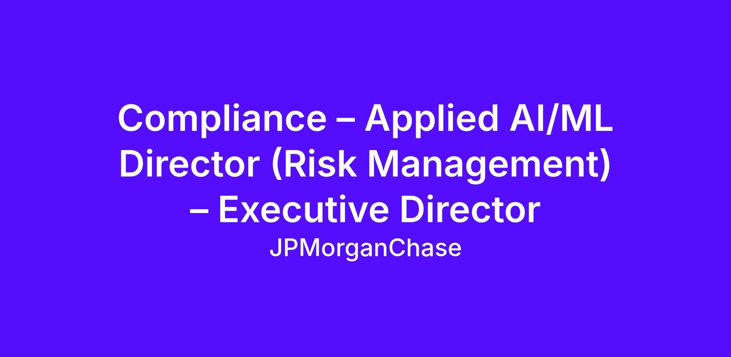 DescriptionBring your expertise to JPMorgan Chase. As part of Risk Management and Compliance, you are at the center of keeping JPMorgan Chase strong and resilient. You help the firm grow its business in a responsible way by anticipating new and emerging risks, and using your expert judgement to solve real-world challenges that impact our company, customers and communities. Our culture in Risk Management and Compliance is all about thinking outside the box, challenging the status quo and striving to be best-in-class.