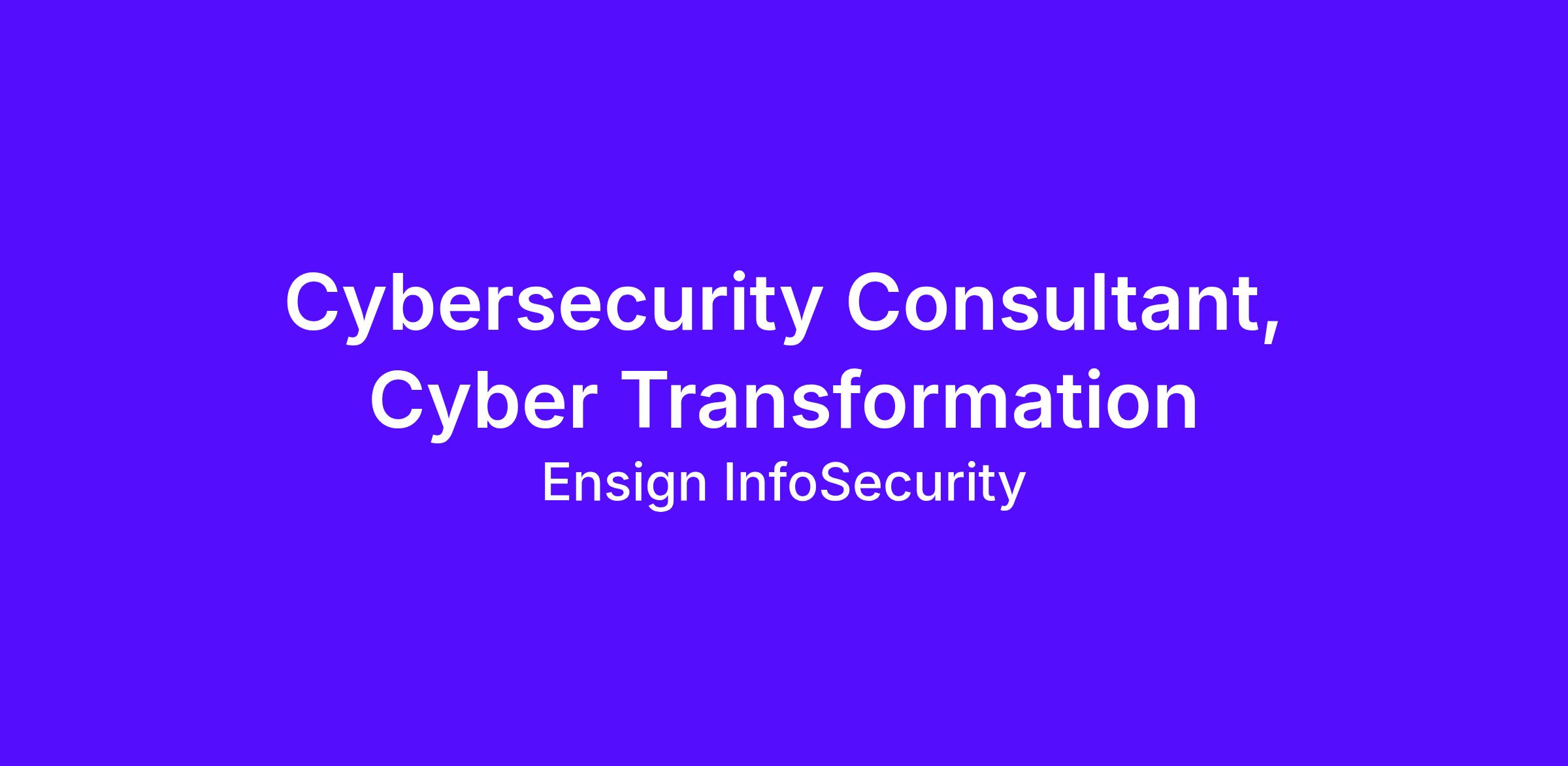 - Reports to the Head, Cyber Transformation Services, under the Head of Advisory