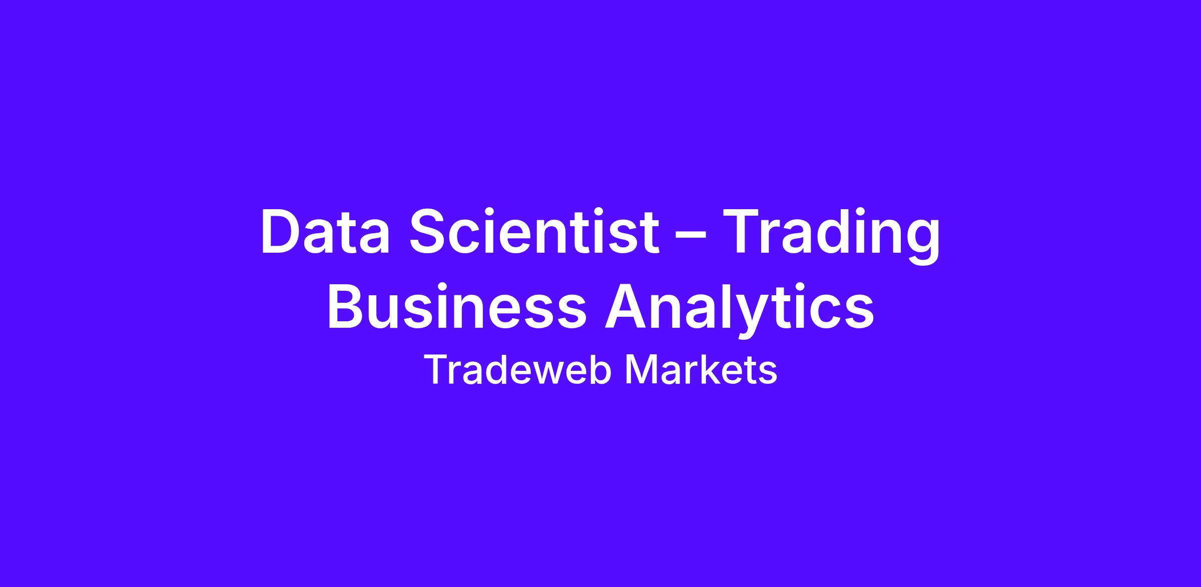 We are seeking an experienced Data Scientist to drive trading business analytics for Tradeweb in APAC. This role encompasses data science responsibilities in platform trading environment, including analyzing complex trading and market datasets (including but not limited to order flow, execution data, volumes, and related financial instruments), identifying patterns in trading activity and extracting actionable business insights.
