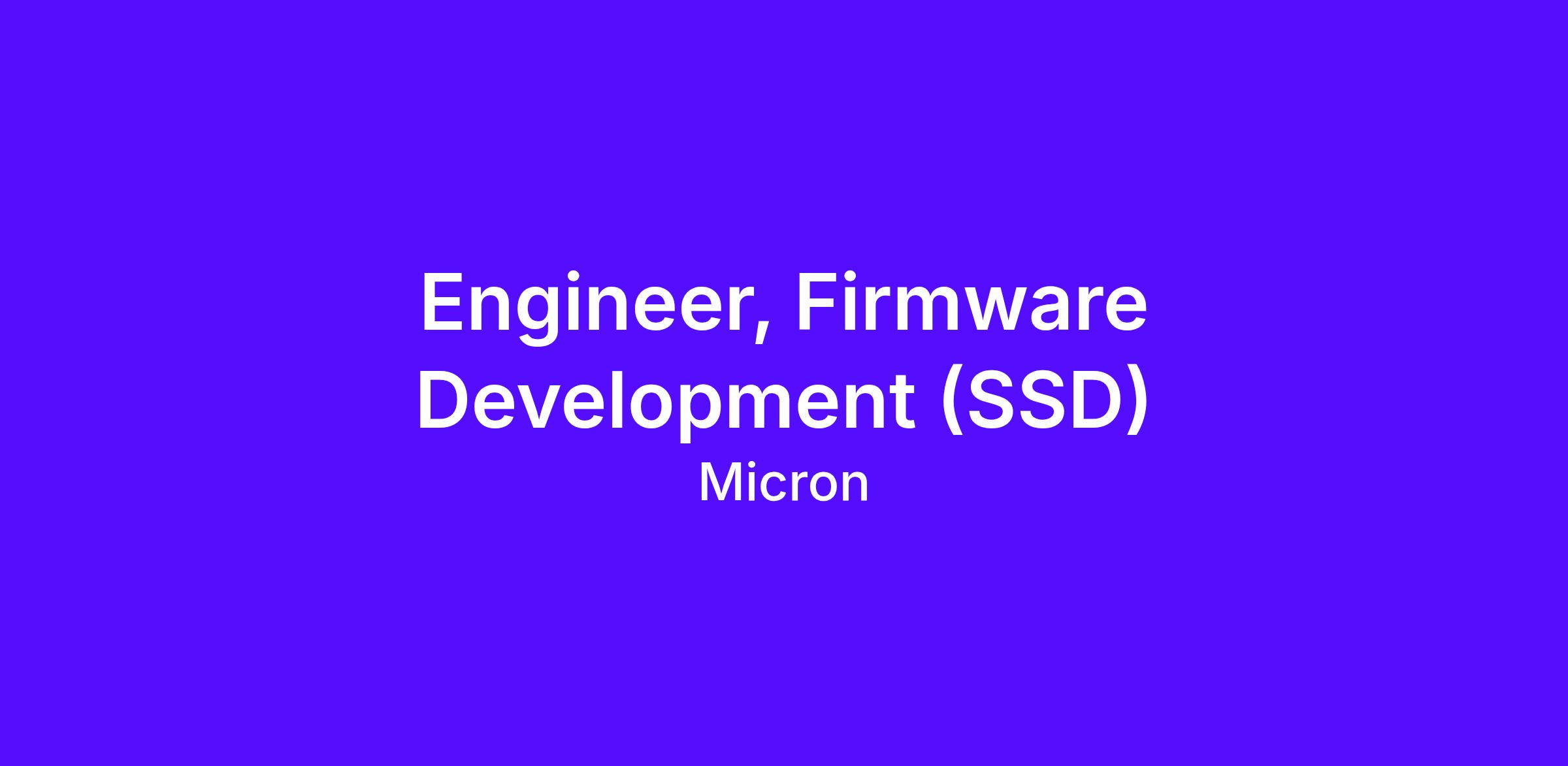As a Firmware Engineer at Micron Technology Inc., you will be providing the technical capability in the creation and integration of Firmware IP for use in SSD products. The lifecycle of this responsibility is associated with the organization;s product development life cycle and can range from product inception to obsolescence or any portion that is defined by specific assignments. You will also be responsible for providing technical support to implement the development and quality assurance processes necessary to insure the firmware IP consistently provides the required functionality, usability, quality/reliability, performance, and supportability in insure Micron SSDs meet their design targets.