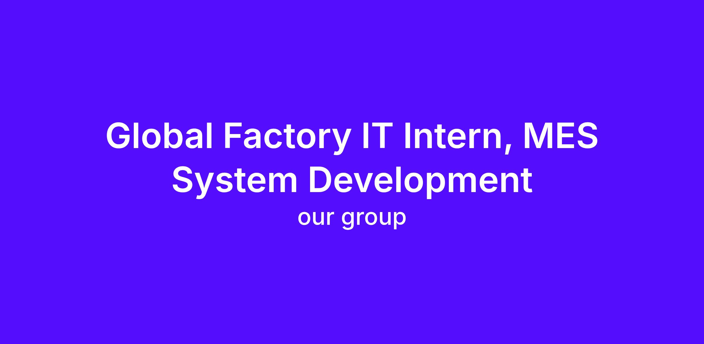 As a Global Factory IT Intern under the Manufacturing Execution System (MES) team, you will: