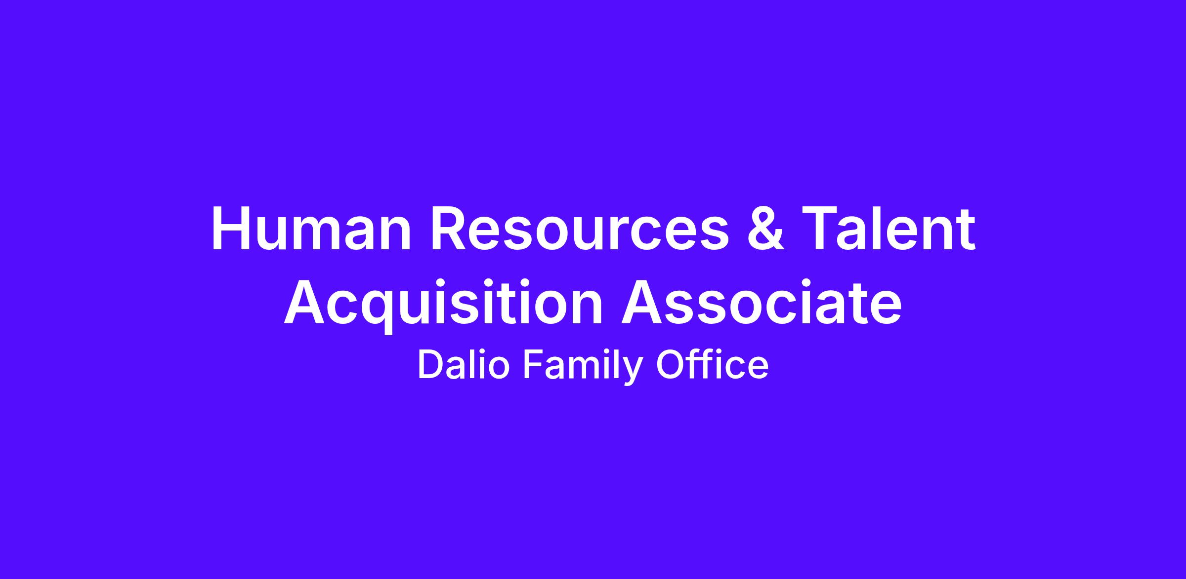 Human Resources & Talent Acquisition Associate, Dalio Family Office Singapore