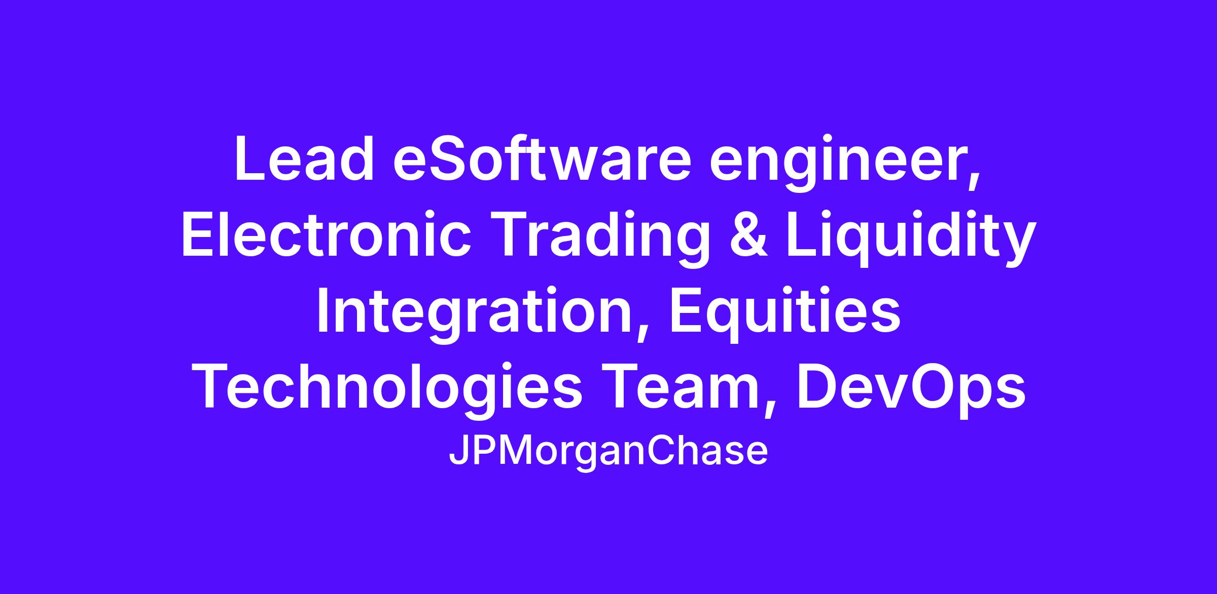 As a Lead eSoftware Engineer at JPMorgan Chase within the Corporate and Investment Bank, Electronic Trading Technology, you are an integral part of an agile team that works to enhance, build, and deliver trusted market-leading technology products in a secure, stable, and scalable way. As a core technical contributor, you are responsible for conducting critical technology solutions across multiple technical areas within various business functions in support of the firm’s business objectives.