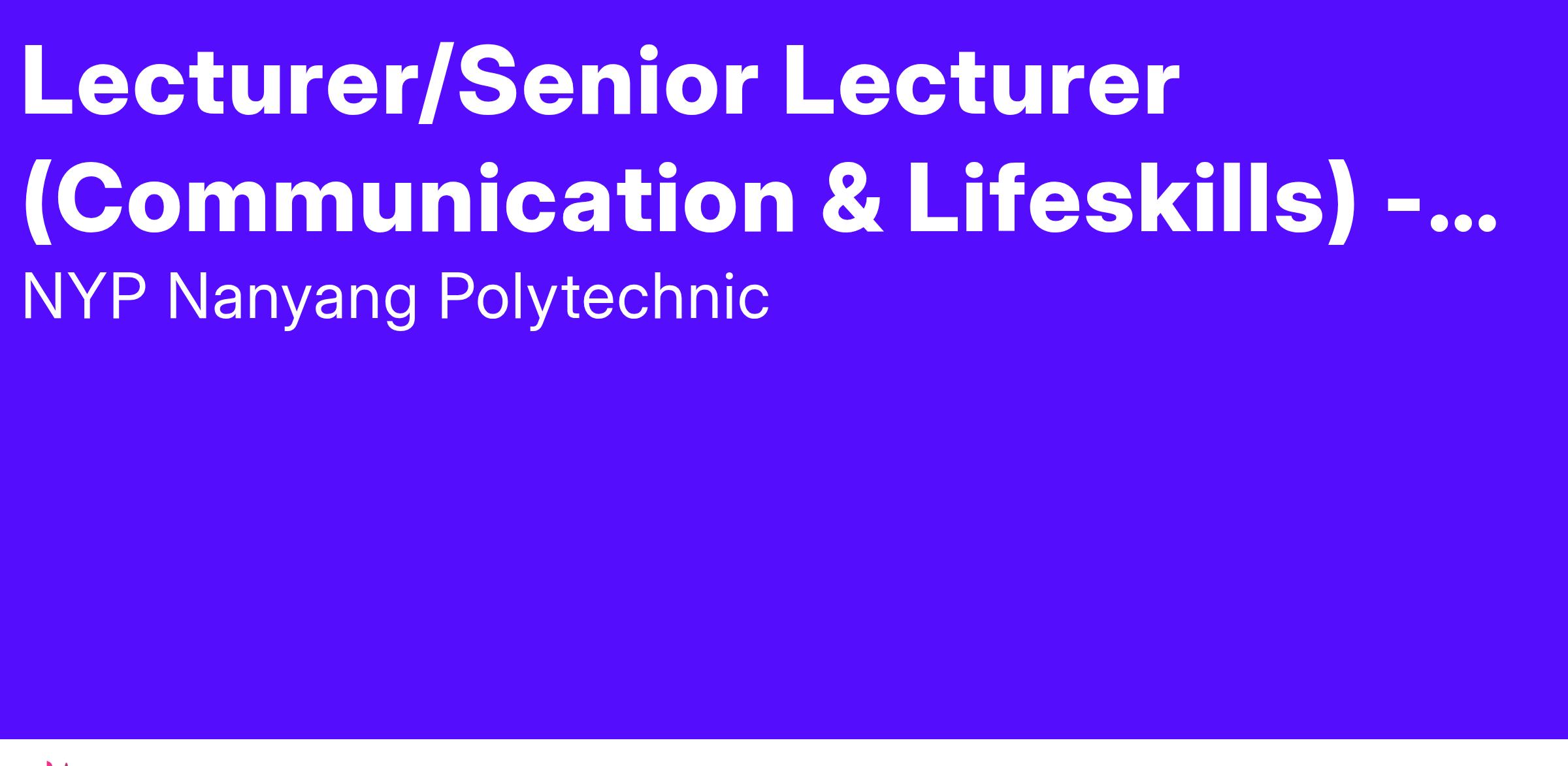 - Develop and/or conduct lessons (e.g., lectures, tutorials, seminars, project supervision, etc.) pertaining to English, interpersonal communication and other lifeskills-related subjects (e.g., critical thinking, innovation, interpersonal & collaboration skills, etc.) for Pre-Employment Training (PET) or Continuing Education and Training (CET) learners, particularly in the health and social sciences domain.