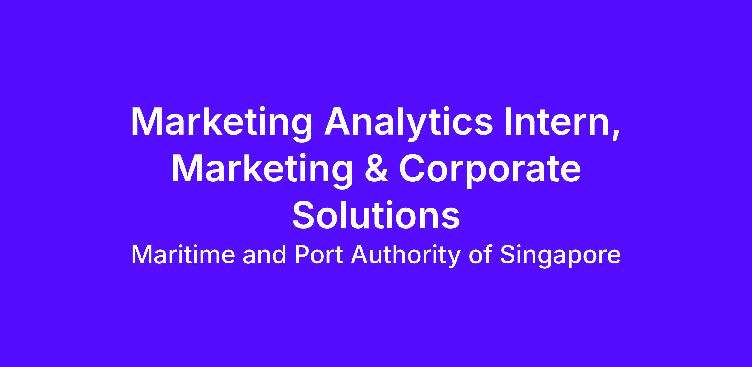 We are seeking an organised, motivated, and detail-oriented Marketing Analytics Intern, under Marketing & Corporate Solutions.