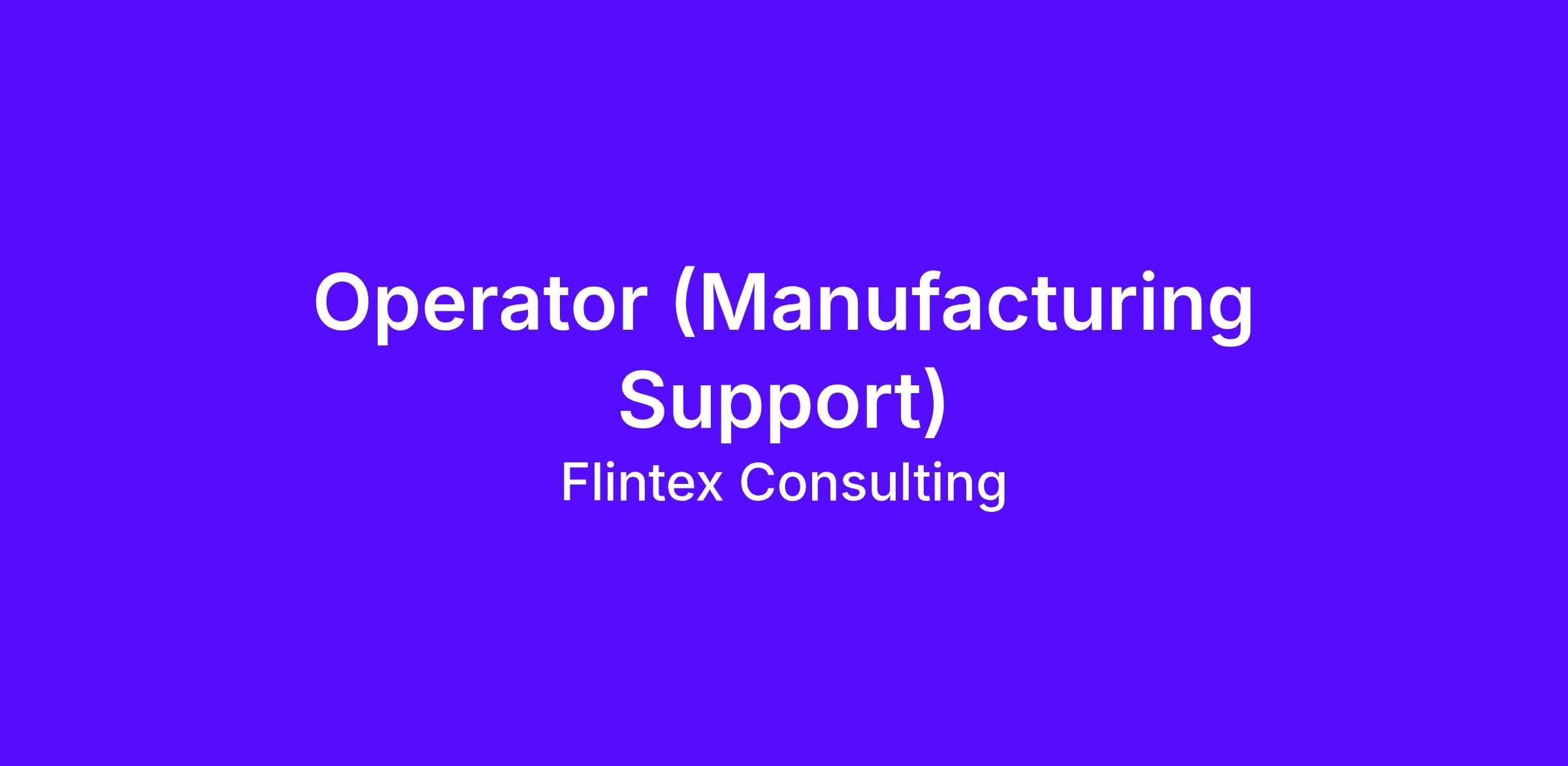 <\/html>"}}],"isMobile":false,"iframe":"true","jobType":"Full time","applyName":"Apply Now","zsoid":"651761644","FontFamily":"Arial, Helvetica, sans\-serif","jobOtherDetails":[{"fieldLabel":"Work Experience","uitype":2,"value":"0\-1 year"},{"fieldLabel":"Industry","uitype":2,"value":"Engineering"},{"fieldLabel":"Salary","uitype":1,"value":"SGD 1200"},{"fieldLabel":"City","uitype":1,"value":"Singapore"},{"fieldLabel":"State\/Province","uitype":1,"value":"Central Singapore"},{"fieldLabel":"Zip\/Postal Code","uitype":1,"value":"079903"}],"headerName":"Operator (Manufacturing Support)","widgetId":"418400000000381837","isJobBoard":"false","userId":"418400000000179003","attachArr":[],"customTemplate":"5","isCandidateLoginEnabled":false,"jobId":"418400000043869108","FontSize":"13","googleIndexUrl":"https:\/\/flintex.zohorecruit.com\/recruit\/ViewJob.na?digest=PmtGoOx0iV9gs6xXwgvAe5v2JJjKJOuU.vKXqabfM3U\-&embedsource=Google","location":"Singapore","embedsource":"CareerSite","indeedCallBackUrl":"https:\/\/recruit.zoho.com\/recruit\/JBApplyAuth.do","logoId":"3xpxkf7cb8cd512f54263a74d5094e14b9c51"}