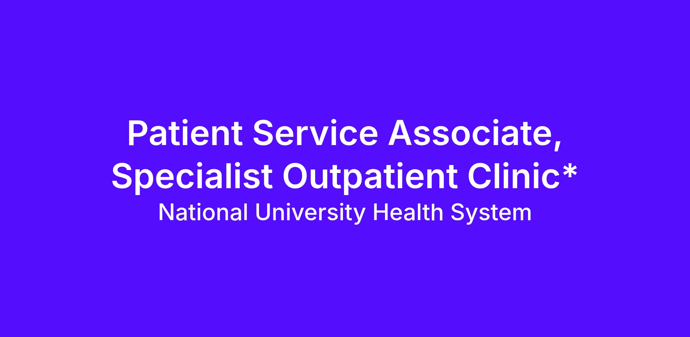 We are seeking a dynamic, resilient, and highly dedicated Patient Service Associate to join our Specialist Outpatient Clinics (SOC).
