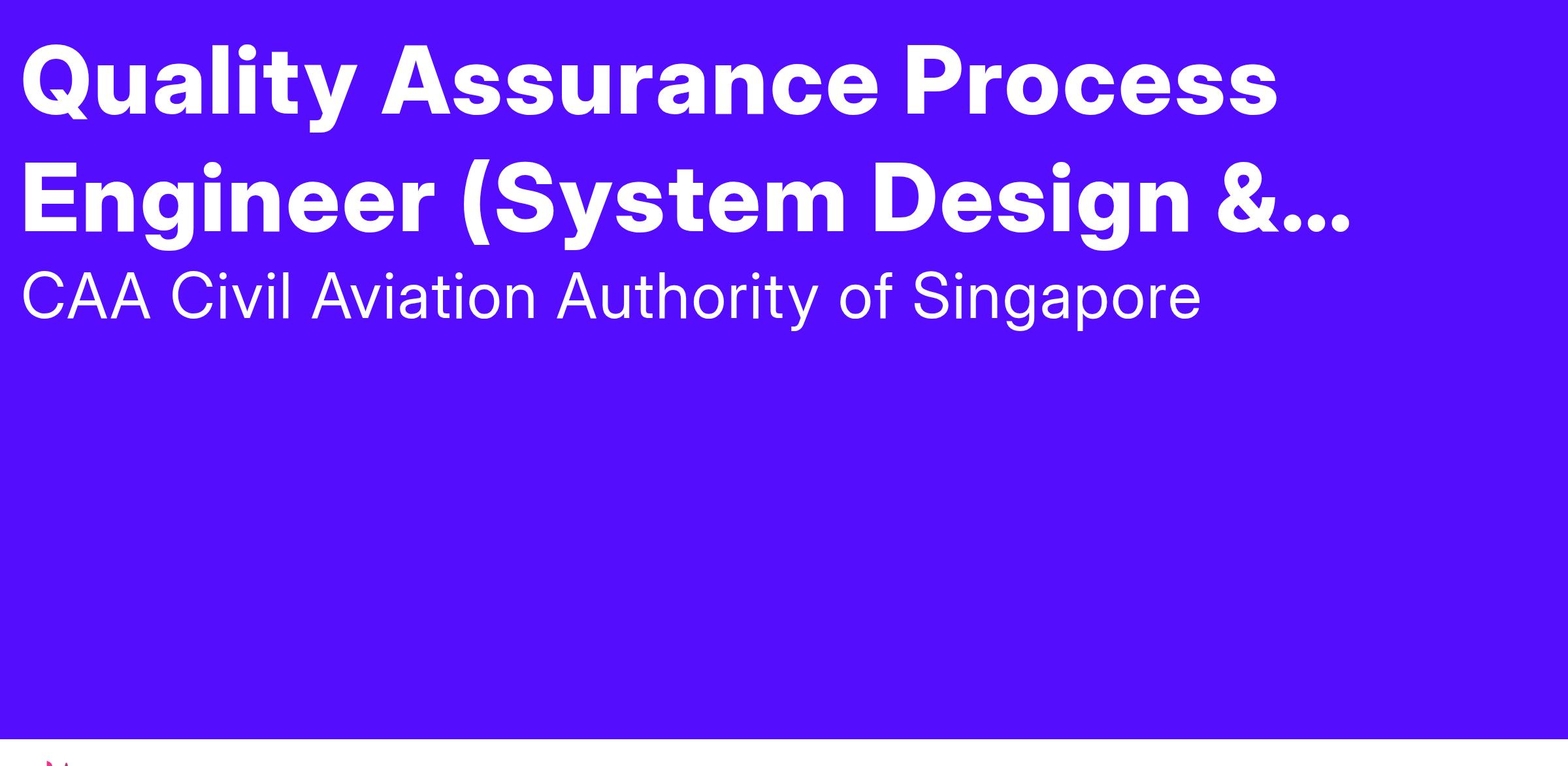 The Next Generation Programme Office (NGPO) in CAAS is looking for a strong, driven, and dynamic engineer to be part of the QA team.
