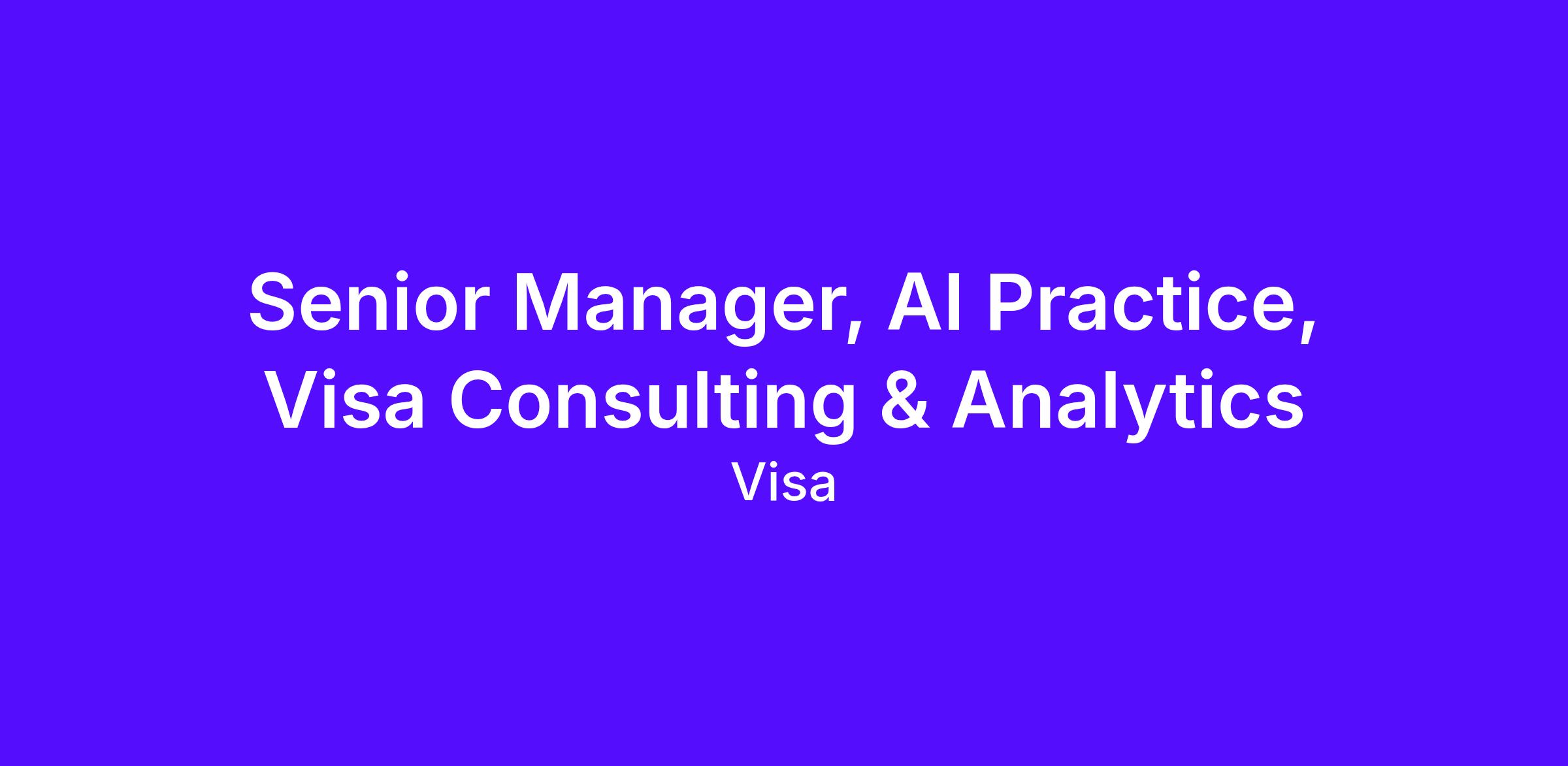Senior Manager, AI Practice, Visa Consulting & Analytics